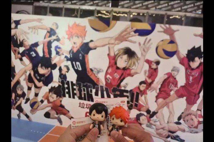 6月15日,河北保定市一家电影院,《排球少年!!垃圾场决战》刚刚结束放映,21岁的小葵站在影厅门口,给大家发放自己带的“无料”,即自己印制的“同人谷”。谷子的柄图都是《排球少年》动漫中的人气角色“孤爪研磨”。研磨是小葵的“我推”,她最喜欢的角色。
