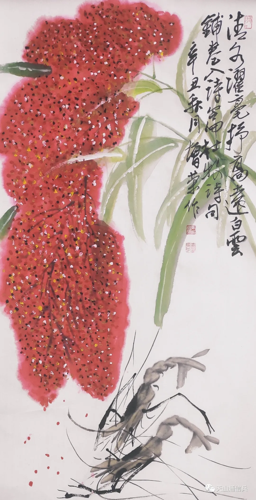 仲秋已尽成,红翎夺天真。