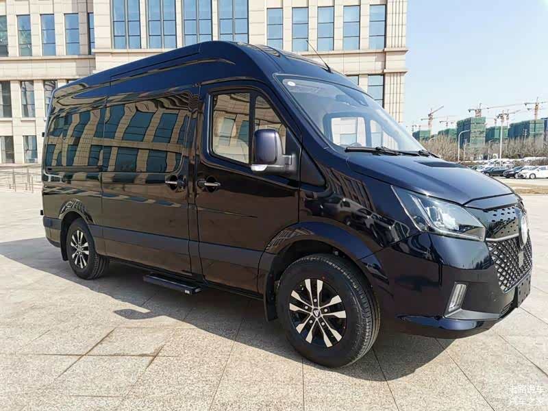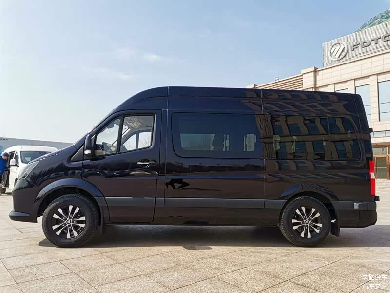 来到车尾,映入眼帘的是5:5对开式后尾门,两个车门对接处融入了经典的福田车标,与车头形成完美的前后呼应。上图精彩的看点应该是光亮如镜的车漆,就这亮如镜面的酷黑车身涂装,是不是得点个赞呢?