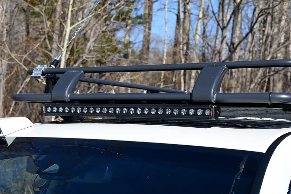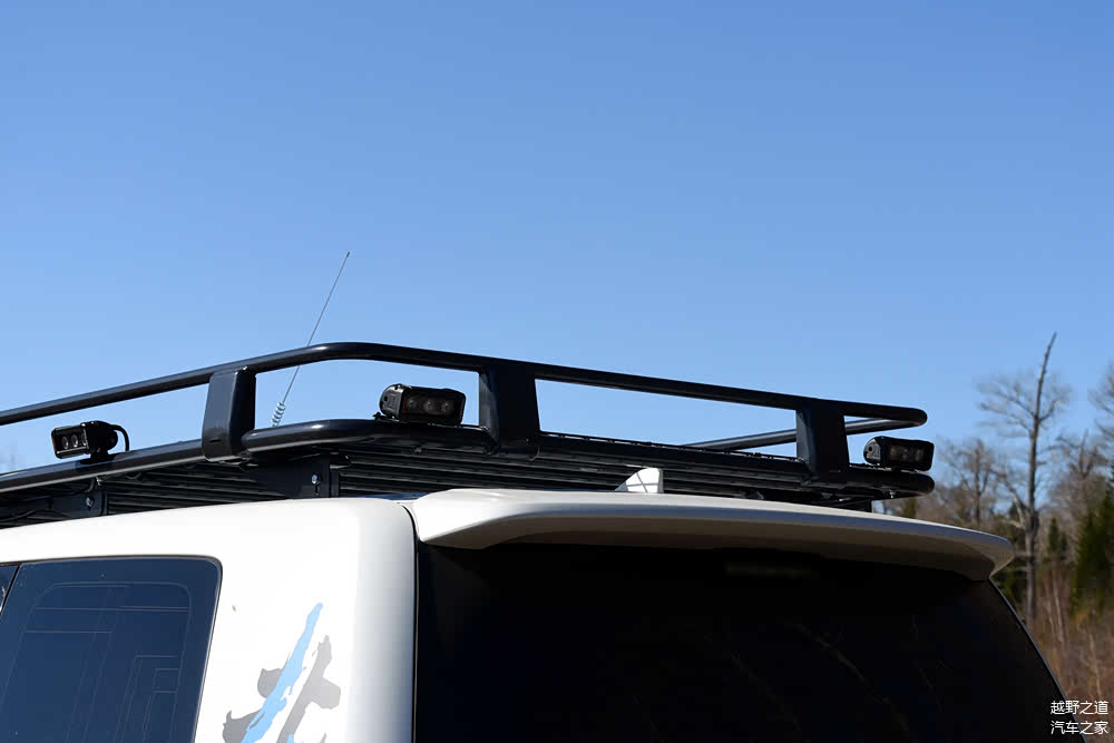 再来说说这台车北极卡车基础改装之外的部分,顶框是其中一项。首先天线的安装位置如果在国内实在不太合理,不过在俄罗斯西伯利亚地区很少见到限高杆,所以天线这么装也就无所厚非了。全车射灯360°无死角照明的感觉很棒,如果在前部射灯下面增加一个导光板,能有效防止射灯开启后照射机盖上刺眼的感觉。国内有改装厂已经这么做了,值得称赞。