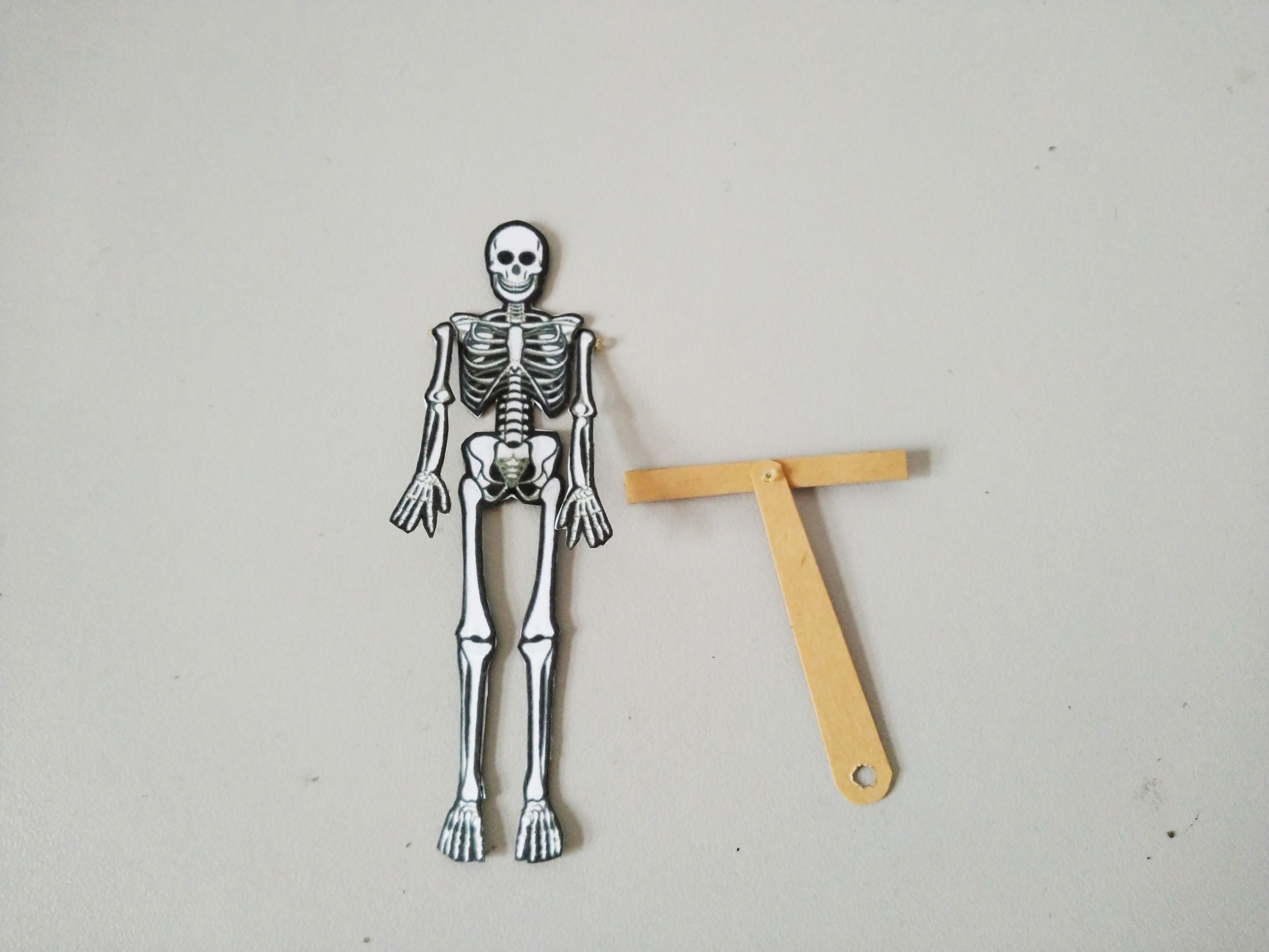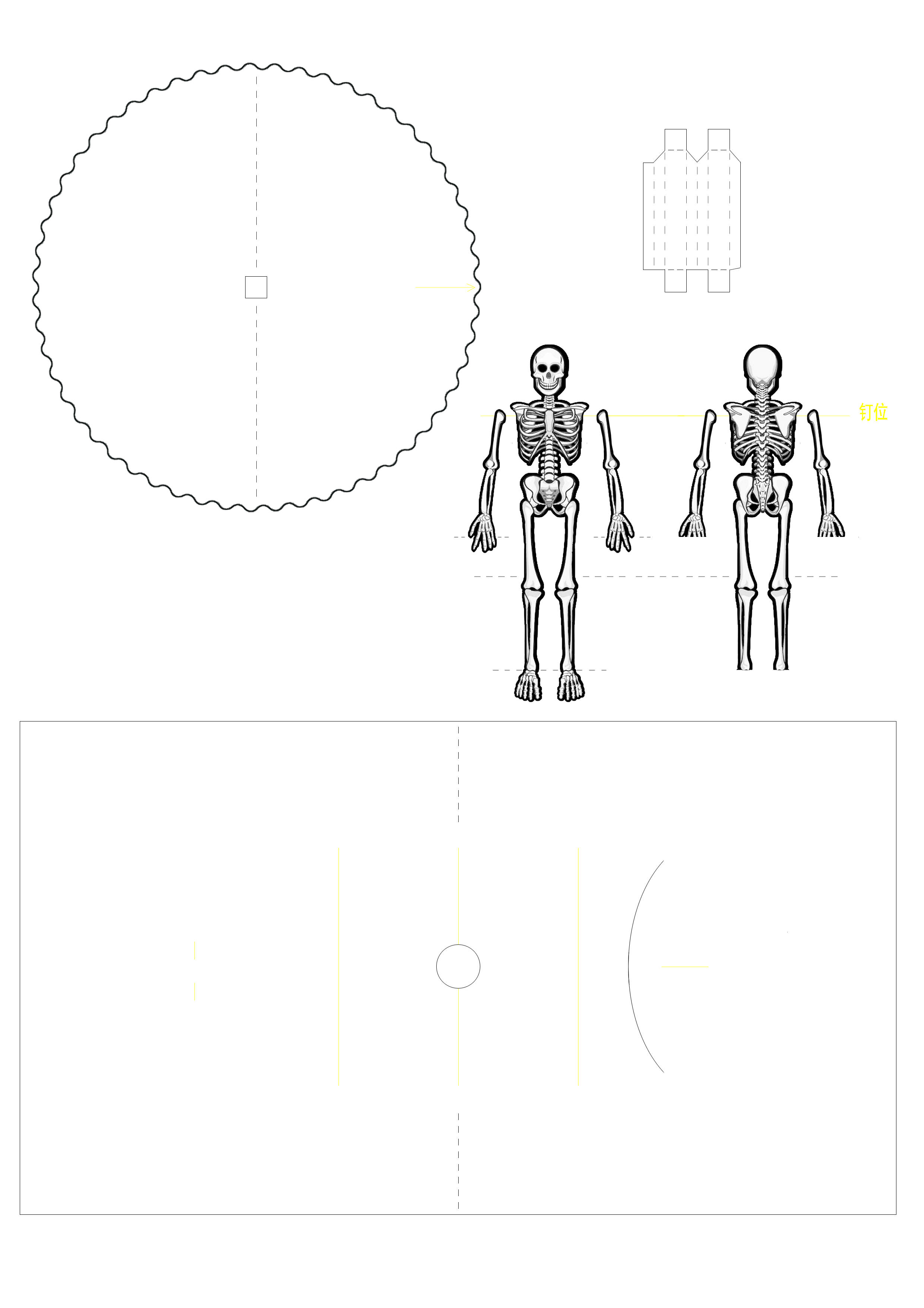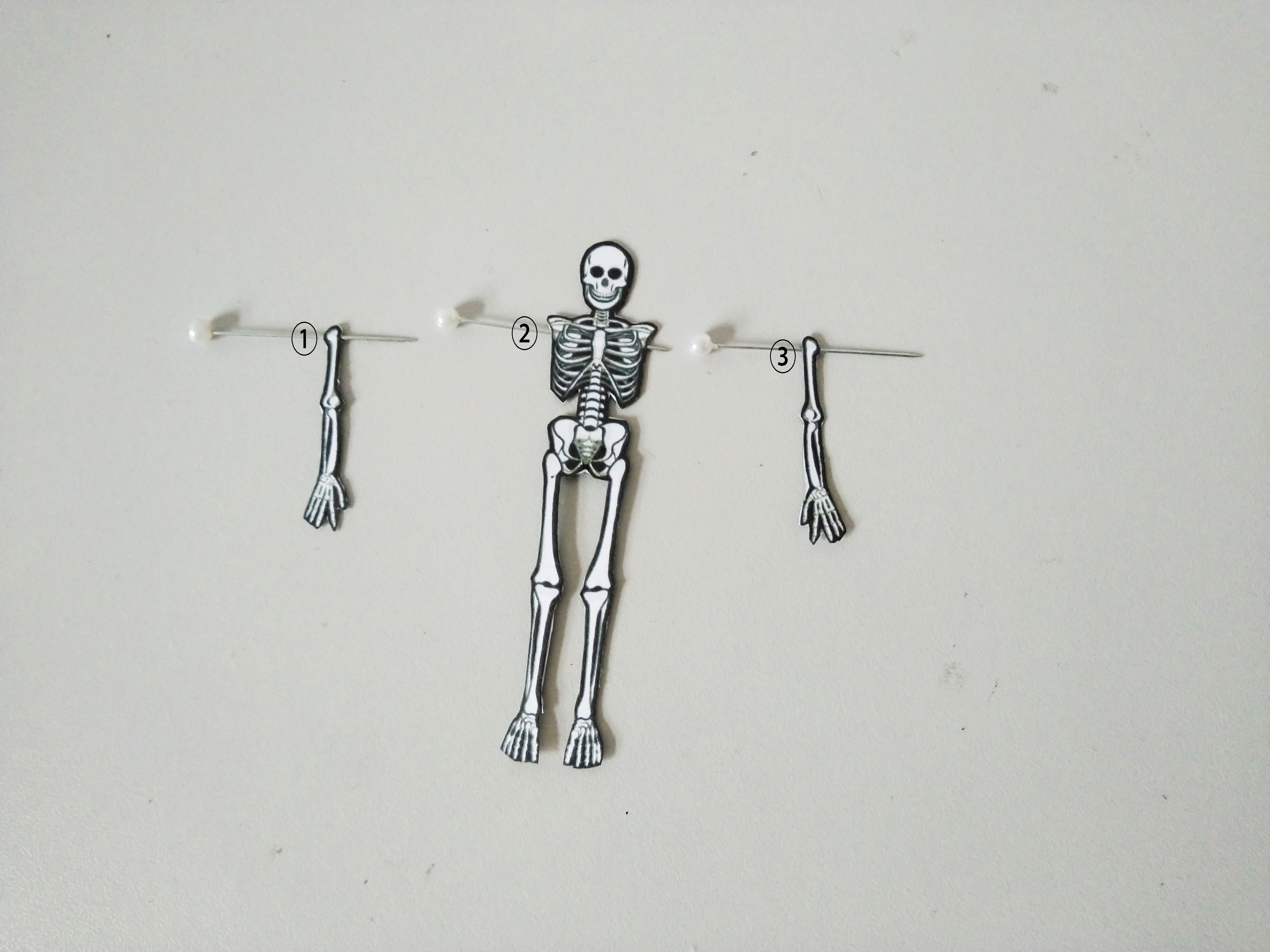 沿钉位穿钉,线不要拉得太紧,让手臂与躯干稍微空出一点间隙,这样更灵活。将磨杆2对粘,做成双层,将磨杆1和2穿钉。
