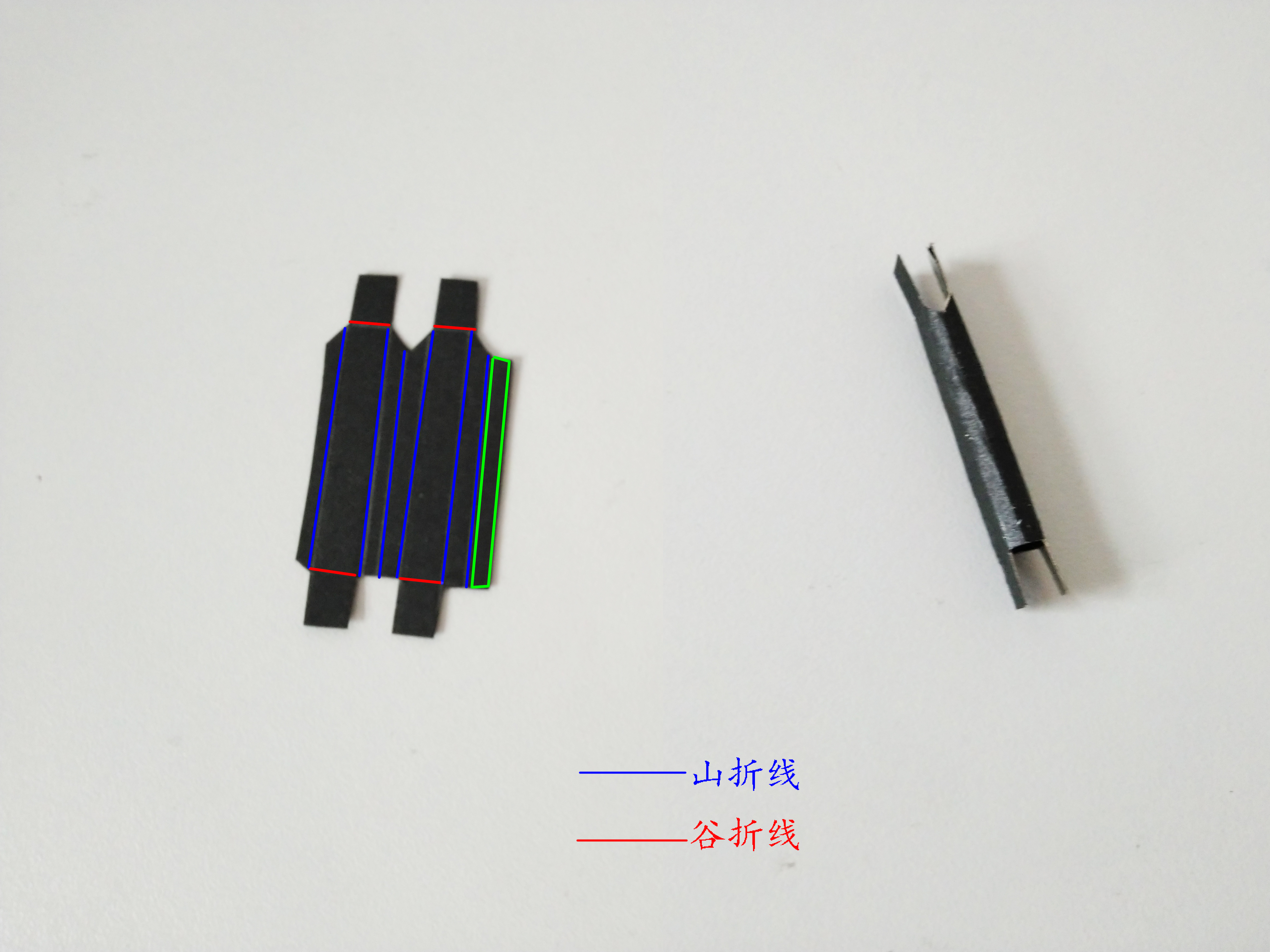 转轴的折法如图,在绿框内涂胶,粘合。