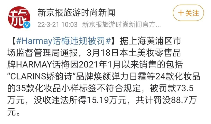 也有大牌商品小样缺乏生产批号,导致话梅被罚没88万的消息,