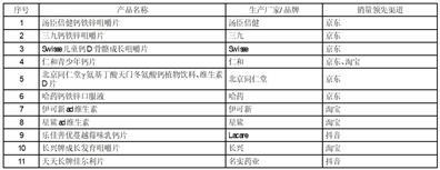 名实药业生产的“天天长佳尔利片”系经过注册的保健食品,注册批准文号为:国食健字G20040706,功效主要是促进生长发育,产品原料构成包括:生物碳酸钙、葡萄糖酸锌、牛磺酸、L-盐酸赖氨酸、益智仁、牡蛎、鸡内金、香橼、甘露醇、微晶纤维素、蔗糖、羧甲基纤维素硬脂酸镁。是一款包含补钙、锌、牛磺酸、赖氨酸、药食同源的中药原料等成分的复合型产品。根据销售访谈了解到,该产品目前主要通过线上渠道销售,在快手销售排名在前5名。
