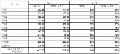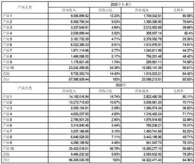 名实药业不存在采购集中度较高且同比显著增加、或过度依赖个别供应商的情形,2023年1-8月和2022年前五名供应商的采购收入占同期成本的比例分别为26.28%和26.45%,第一大供应商采购金额占同期成本的比例为20.12%和18.36%。