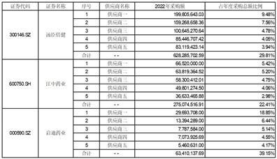 名实药业截至2022年12月31日按当期累计发生额统计前五大供应商情况如下:
