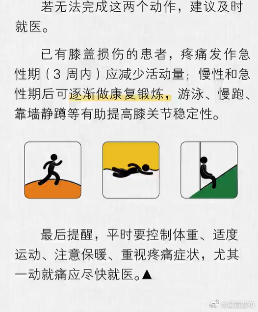 膝关节是人体最大、结构最复杂的关节,它由1层滑膜、2个半月板、3块骨头、4根韧带构成。不同膝关节疾病或损伤,常有特定的疼痛部位。膝盖疼到底是哪里的病?#一个动作判断膝盖是否出问题# (@生命时报)