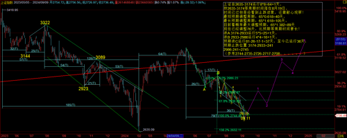 上证自2635-3174运行8*8=64+1天,按2635-3174等周期时间落在8月19日,时间已过但是没看到止跌迹象,还需耐心观察!最短预期调整周期:65*0.618=40天,最长预期调整周期:65*1.618=105天,目前看概率最大调整预期:65*1.382=89天现在已经调整76天,比预期等周期时间要长!浪A3174-2933运行5*5=25+1天,浪B2933-2986运行4*4...