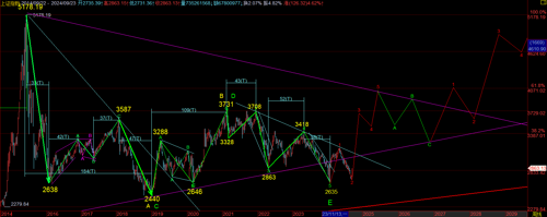 37743- 按你们2986为一段下跌浪的起点,现在处于3333浪中,走完可时间长下了,关键是主跌刚刚开始!下周应该3天就到2635跟前了,下下周破之。 如果你不认可当下是2986的3333浪中,那你就不是艾略特波浪理论,永远在玩自己的波浪理论,股市就是战场,不能每天玩过家家的思维,不要等3年后才承认这里是战场! 实际下跌浪的起点是2947,当下在333浪中。 破2635,所有大小浪型又重新该画了,我浪型从来没有变过,单边下跌,下跌浪不断循环下去了,现在还是无法分清当下是3174的15浪中还是3浪中,因为你不知道这轮下跌是180天还是270天甚或更多,如果是180天左右,那就是2947开始3浪。