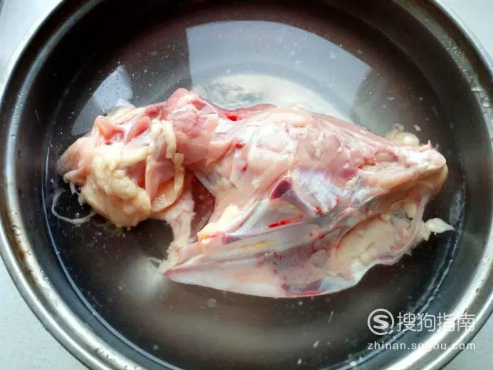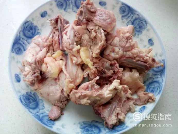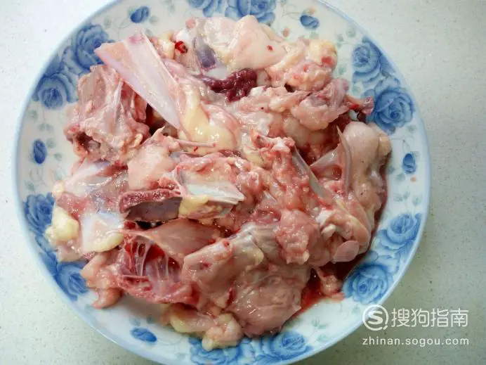 鸡架放入水中浸泡一下,去除上面的血水。然后用水清洗干净,控干水分,剁成块。