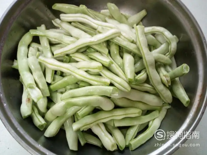 芸豆摘干净,再用水清洗干净,备用。