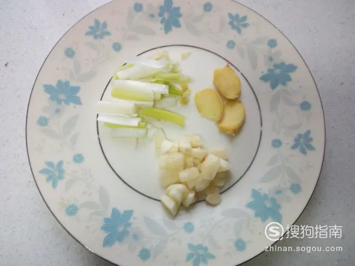 切好葱,姜,蒜,备用 。