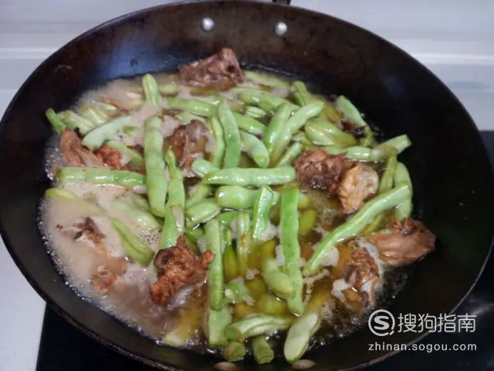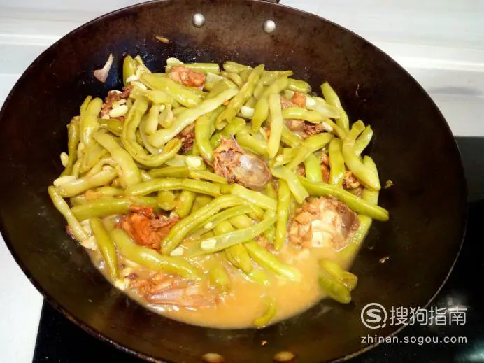 炖的过程中要适当用勺,翻一下芸豆。炖至少量汤汁时,放入味精,关火出勺。