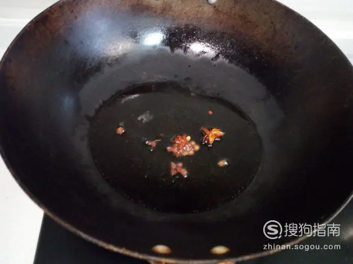锅内放入油加热,油热后放入花椒,八角,爆锅。放入鸡架翻炒。