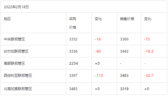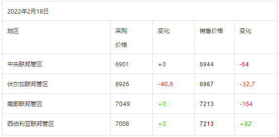 2月18日俄罗斯油葵、俄罗斯葵油各地区价格变化_手机新浪网