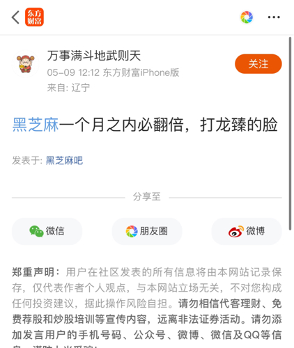 $黑芝麻(SZ000716)$大盘涨停这货也没试过涨停,大盘一跌,这货立即摸地板,真的是太水了,浪费行情