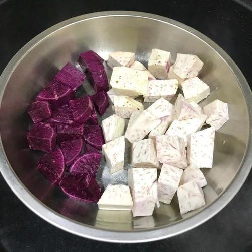 芋头半个、紫薯数个洗净切片蒸熟