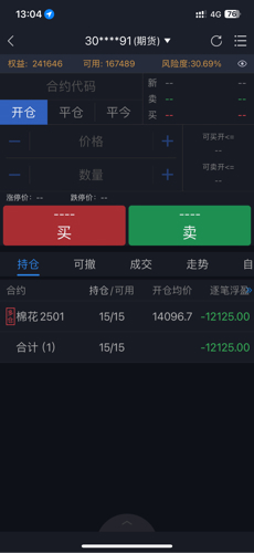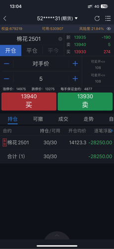 $棉花501(CZCE|CF501)$14115满仓多单被套