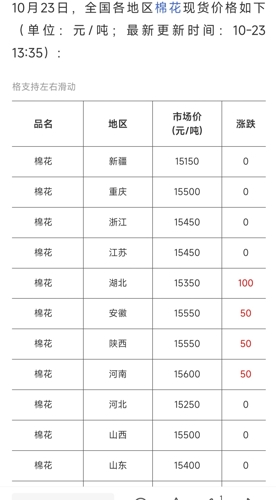 $棉花501(CZCE|CF501)$棉花核心观点:CF01上方空间有限核心逻辑:1、USDA10月报下调美棉产量与出口,库消比上升。全球产量增加,消费调低,报告整体偏空;2、机采棉收购价区间仍集中在6.2-6.3元/公斤,手摘棉收购价集中在7.1-7.3元/公斤左右,棉籽在2.0-2.1元/公斤左右,价格稳定,新棉基差400-600元/吨,轧花厂理性收购,对于价格支撑力度有限;4、下游市场采...