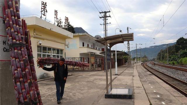 3月2日一大早,小小的茅草坪站就坐满了背着农产品前来乘坐“慢火车”的群众。蔗农李进贤准备从茅草坪站乘坐6081次慢火车给在松河的客户送甘蔗。